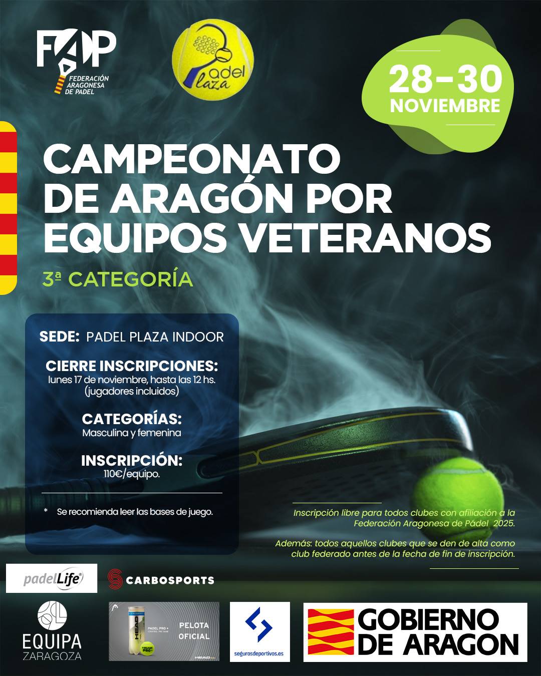 Inscripción libre para todos clubes con afiliación a la Federación Aragonesa de Pádel 2025.