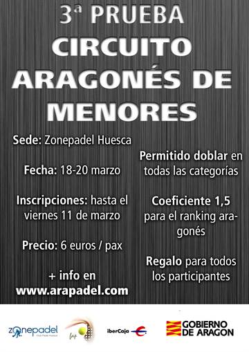Se avecina una etapa histórica del Circuito Aragonés de Menores este fin de semana (1-3 de abril), que tendrá lugar en las instalaciones zaragozanas de Pádel Plaza Indoor. Esta prueba es el Ciclo Clasificatorio II, que otorga dos plazas para el TyC Premium 2 nacional: infantil masculino y cadete femenino. Este hecho, unido a la buena salud que demuestra nuestro deporte, han provocado un gran acontecimiento: por segunda prueba consecutiva (la primera fue en Huesca, a mediados del mes de marzo), el Circuito Aragonés de Menores ha batido su record de participación con hasta 81 parejas inscritas y 162 jugadores/as, lo nunca visto en nuestra Comunidad.