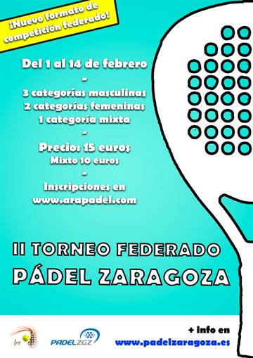 La primera prueba del ranking único aragonés 2016 ya está en juego. La carrera por mejorar la posición en el ranking de Aragón 2016 ya está aquí. Hasta 64 parejas pugnarán por los puntos federados en 5 categorías distintas: 3 masculinas, 2 femeninas y una mixta.
