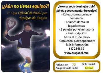 La Federación Aragonesa de Pádel quiere aprovechar estas líneas para felicitar a todos los menores por su gran actitud durante este y el resto de los torneos, así como a los padres por su compromiso e ilusión. La apuesta que esta Federación hizo por la cantera a principio de año ha tenido una respuesta ejemplar por parte de todos ellos.
