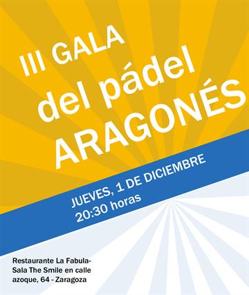 La Federación Aragonesa de Pádel informa de que la III Gala del Pádel Aragonés se celebrará el próximo jueves, 1 de diciembre en el local zaragozano “La Fábula” de la calle Azoque.