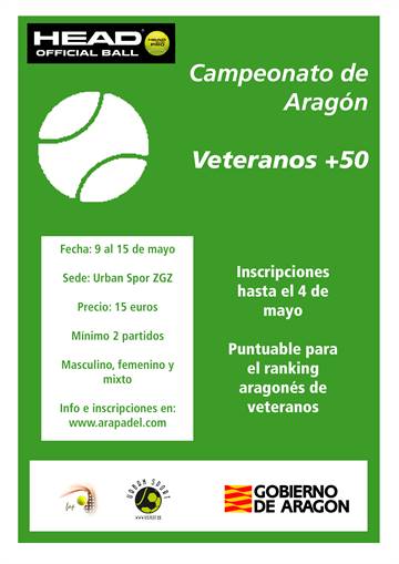 El Campeonato de Aragón de veteranos +50 se ha celebrado esta última semana en las instalaciones del Urban Sport ZGZ, contando con parejas de muy alto nivel y un gran ambiente. Las finales se celebraron el domingo 15 de mayo en categoría mixta, femenina y masculina.