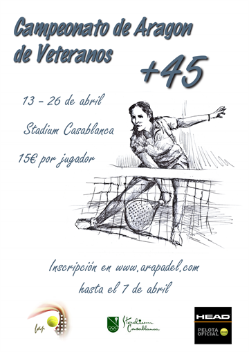 Desde el lunes 13 y hasta el domingo 26 de abril se juega en las instalaciones del Stadium Casablanca de Zaragoza el Campeonato de Aragón de veteranos +25. La prueba ha contado con muy buena acogida – 47 parejas – y es la tercera del Circuito de Veteranos 2015.