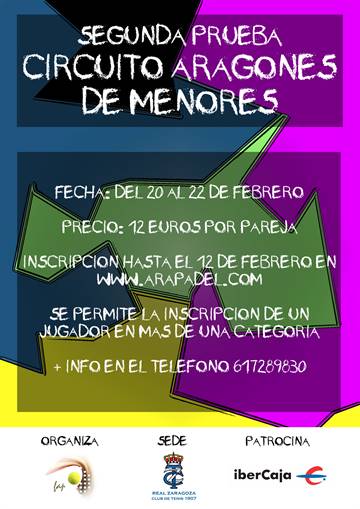 El Real Zaragoza Club de Tenis fue el escenario de la segunda prueba del Circuito Aragonés de Menores, celebrada entre el 20 y el 22 de febrero de 2015. En ella, las 56 parejas participantes disputaron hasta 8 categorías para tratar de alzarse con el triunfo. Varias fueron las novedades de esta prueba, como las finales por la tarde y la posibilidad de doblar categoría y jugar en varios cuadros a la vez, algo que aprovecharon varios jugadores y que provocó que varios duelos se reeditarán en distintos cruces.