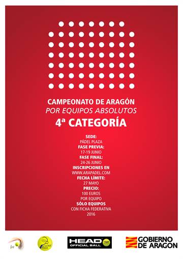 La fiesta del pádel aragonés ha dado comienzo. El Campeonato de Aragón por equipos de Cuarta Categoría, el más multitudinario de todos, ha comenzado este fin de semana en las instalaciones de Pádel Plaza con la disputa de la fase previa masculina, en la que han participado 32 equipos y un total de casi 600 jugadores. Sólo los 8 mejores conjuntos han conseguido el pase a la fase final, que se disputará este próximo fin de semana, simultáneamente a la categoría femenina, que consta de 11 equipos.