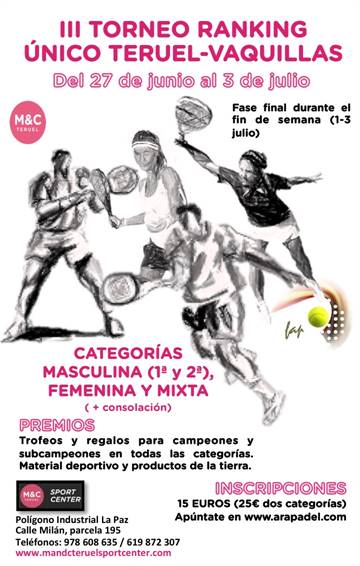 El III Torneo Ranking Único de Teruel – Torneo Vaquillas es la siguiente parada del Circuito Aragonés Absoluto. Esta prueba es el decimoquinto open de la temporada 2016, y cuenta con una categoría mixta, una femenina y una masculina, aunque sólo esta última es puntuable para el ranking nacional.