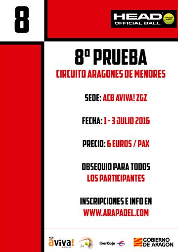 El ACB Aviva de Zaragoza es el protagonista de la siguiente parada del Circuito Aragonés de Menores. Sus instalaciones acogerán durante este fin de semana la 8ª Prueba del Circuito Aragonés de Menores. Esta prueba contará con 55 parejas inscritas en 8 categorías distintas. Además, es la última prueba antes del parón estival, que servirá para coger fuerzas de cara al Campeonato de España que se disputa en Zaragoza a finales de agosto.